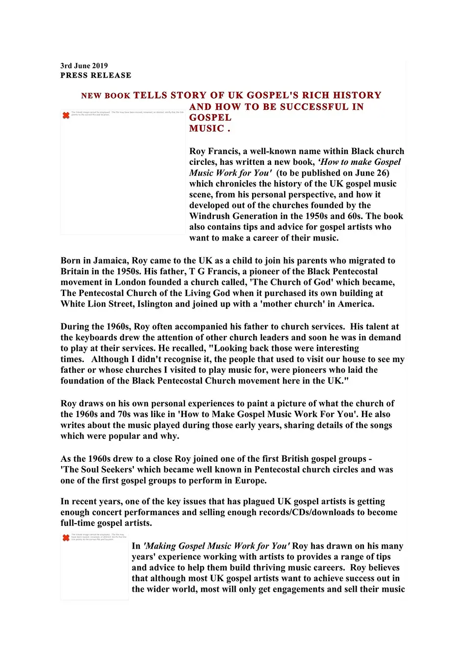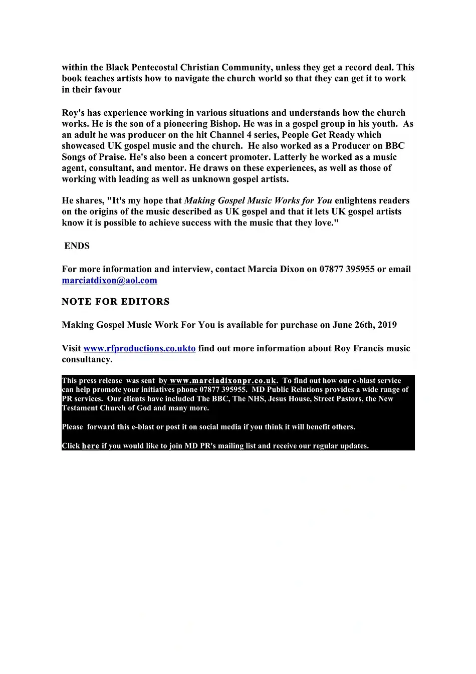 Historian & author of: ‘How to Make Gospel Music Work For You’ His book launch at Archbishop Tenison’s (Croydon) School, inspired the next generation.